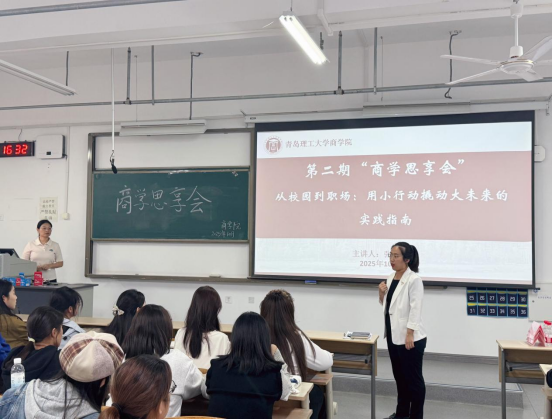 为引导学生树立科学职业发展观、掌握系统的职业生涯规划方法,10月16日,商学院举办第二期“商学思享会”活动,本期活动以“从校园到职场:用小行动撬动大未来的实践指南”为主题,特邀学院国际商务系教师张真真担任主讲嘉宾,2025级各专业学生代表参加活动。