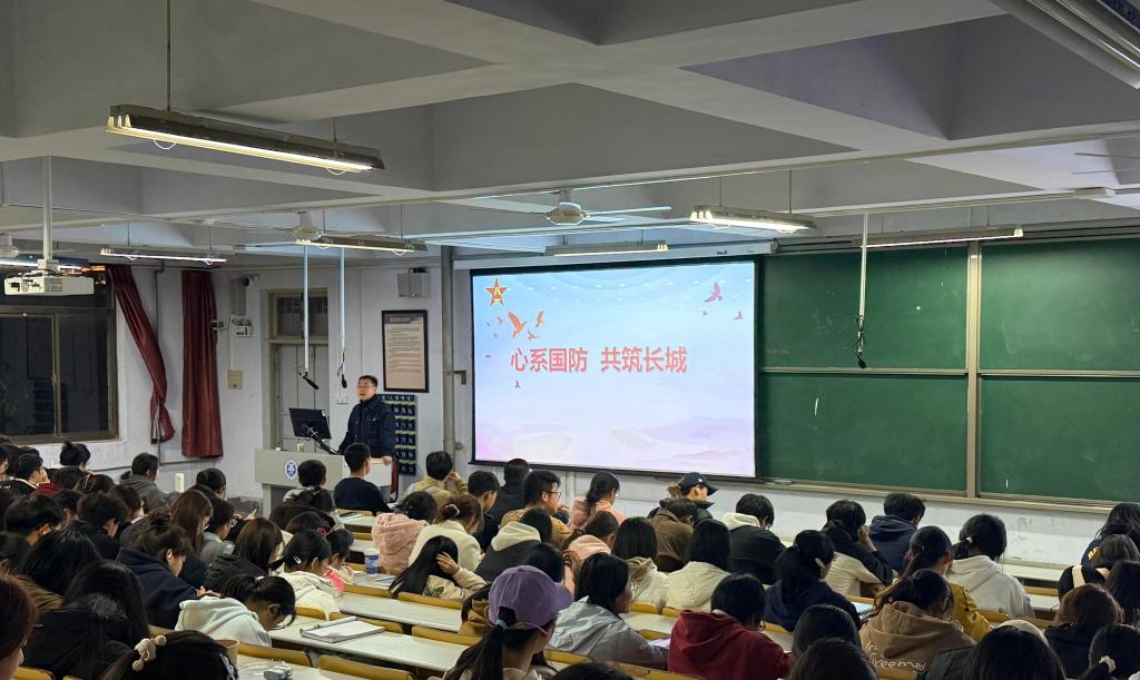 于文盛通过讲述优秀大学生士兵的先进事迹,深刻阐述了国防建设的重大意义,强调青年是国防建设的生力军,鼓励同学们将专业知识与国防建设相结合,在军营中锤炼意志、增长才干,将个人的“小我”融入祖国的“大我”,用青春和热血为祖国的和平与安宁筑起一道坚不可摧的“钢铁长城”。