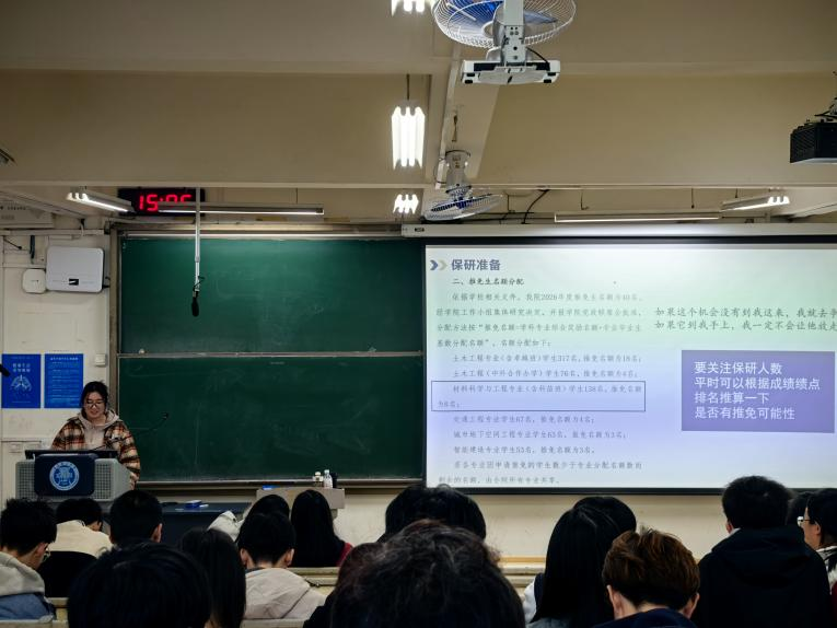 为深入实施学院学风建设“四苗工程”,充分发挥优秀学生的榜样引领作用,帮助低年级同学科学规划大学生涯。10月29日下午,土木工程学院在一号教学楼B125、B211、B204教室分专业、分批次举办了“研究生推免学生学习经验分享交流会”。2024级全体学生参加了本次活动。