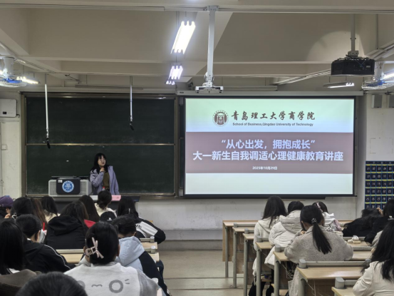 专业赋能,点亮方向。10月29日,学院组织开展“从心出发,拥抱成长”大一学生自我调适心理健康教育讲座,特别邀请青岛市精神卫生中心儿童青少年科主治医师刘洁主讲,300余名2025级学生参加活动,讲座由商学院辅导员张夕璇主持。刘洁从大学生生活环境、学习模式、人际交往与自我认知四个维度系统剖析了新生面临的适应性挑战,并对“优秀者困境”“社交形象焦虑”等现象提出解决思路。新生易因生活空间、学业方式及社交结构等方面的转变引发心理落差与目标迷茫,刘洁鼓励同学们通过“四象限法则”“番茄工作法”等方式优化时间管理,通过良好生活习惯的养成、情绪管理技巧训练等方式培养积极的心理品质,以强大的心理调适能力应对未来人生路上的机遇与挑战。