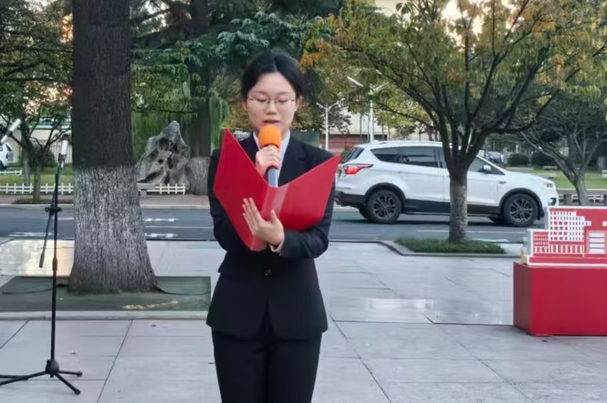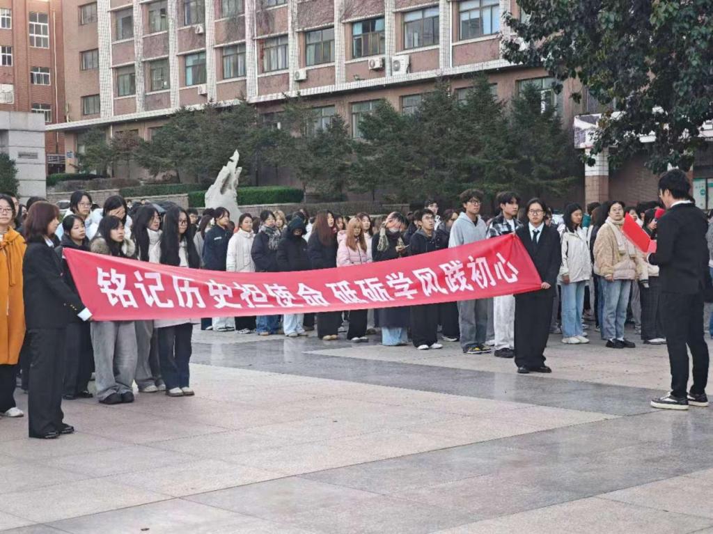 随后,2025级杨怡菲、刘新宁、刘倩、苏锦怡等同学带来朗诵《铭记历史担使命 砥砺学风践初心》。深情回顾了杨靖宇、赵一曼等抗战先烈的英勇事迹,也展现了新时代学子在校园中勤学笃行的青春风貌,使在场师生深切感受到历史的厚重与青年一代的责任担当。