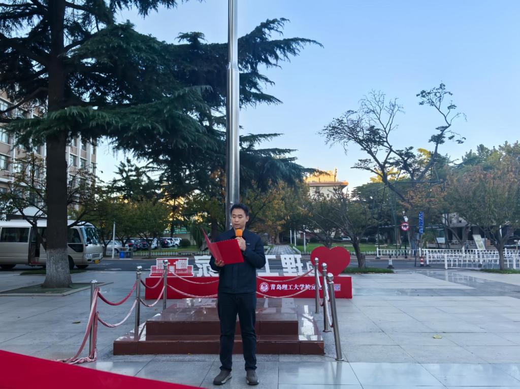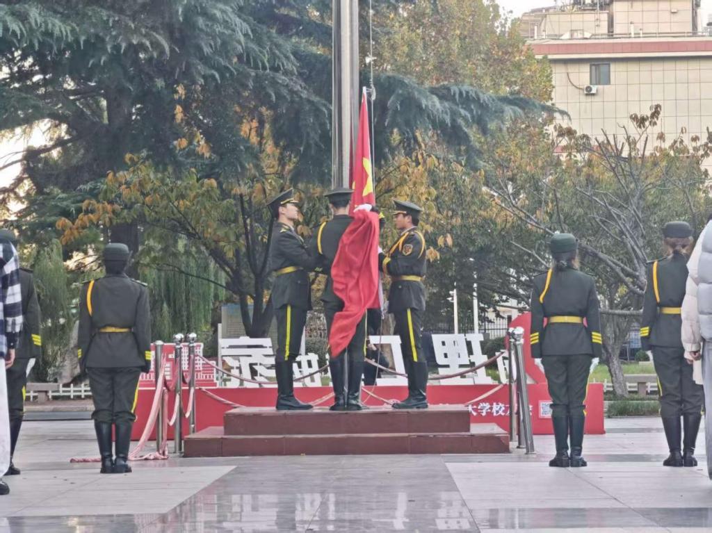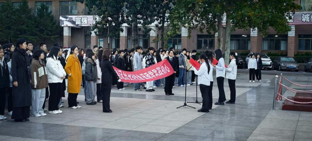 年、厚植青年学生爱国主义情怀、涵养优良学风,11月3日,人文与外国语学院在市北校区举行“铭记历史担使命,砥砺学风践初心”主题升国旗仪式。辅导员刘文帅及2025级新生共同参与,仪式由社工252班孙何允泽同学主持。