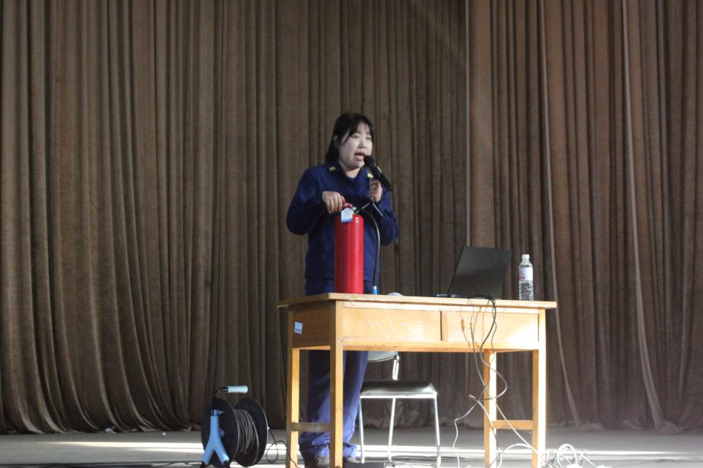 石欣玉以高校火灾典型案例为切入点,围绕校园消防安全展开详细讲解。她系统梳理了宿舍违规用电、实验室操作不当、消防通道堵塞等常见安全隐患,结合实物演示了灭火器的正确使用方法,并通过模拟火灾逃生场景,指导同学们掌握“低姿、捂鼻、沿墙”的逃生要点,强调“预防为先、初期处置”的消防原则。