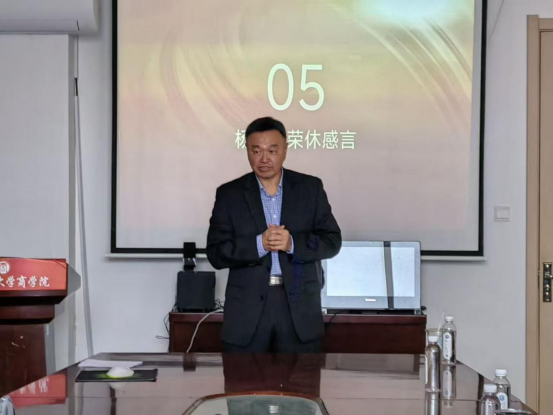 11月5日上午,商学院“岁月如歌·致敬杨爱义教授”荣休仪式在学院楼604会议室举行。商学院党委书记肖学斌、院长云乐鑫,学校离退休工作处副处长刘聘,会计系全体教师出席仪式。