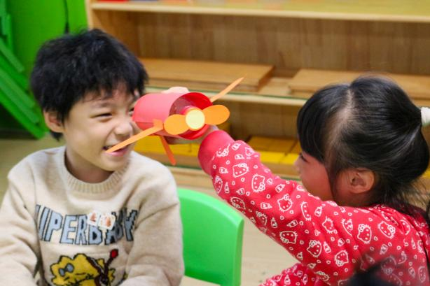 随后,同学们化身“小老师”,带领孩子们制作简易飞机模型。他们分步示范折叠技巧,耐心指导每一个步骤,孩子们认真跟随,稚嫩的小手专注地裁剪、拼接。不一会儿,形态各异的手工飞机诞生。同学们还展示了利用专业知识制作的手工飞机,结合空气动力学和结构力学原理,用童趣比喻让复杂知识变得易懂。“这架飞机的翅膀像小鸟一样,能借助风的力量飞起来哦。”孩子们纷纷举起自己手中的作品,在同学们的带领下奔向操场进行试飞。纸飞机在空中划出一道道弧线,承载着他们对蓝天的向往。活动最后,孩子们围坐在一起,用彩笔在飞机上写下自己的梦想,“长大当飞行员”“我要开真正的战斗机”稚嫩笔迹里藏着坚定信念,悄然播下了爱国强军的种子。