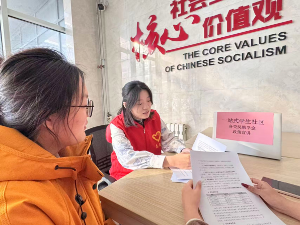 本次活动创新形式,采用“定点咨询”与“朋辈入户”相结合的方式同步推进。在宿舍一楼大厅设立的政策答疑服务站,通过“展板展示+案例讲解+互动问答”的形式,为往来同学提供“一对一”的精准咨询服务。现场围绕国家助学金申请条件、各类奖助学金评审细则、助学贷款政策及勤工助学岗位申请等学生普遍关注的内容,进行了细致全面的解读,帮助同学们在“家门口”解决政策疑问。