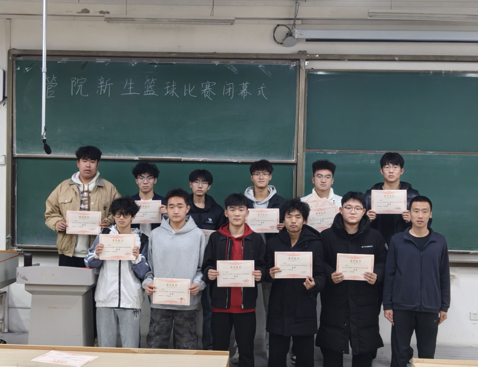 11月12日,管理工程学院2025级新生篮球赛颁奖典礼在B135举行。学院党委副书记柳志广、全体辅导员及2025级新生参加活动。