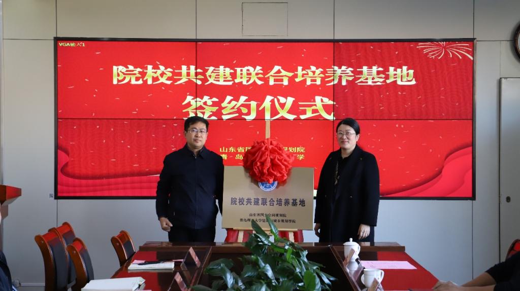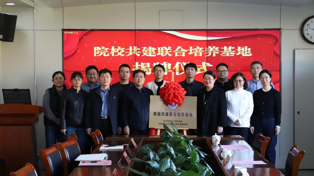 11月19日,建筑与城乡规划学院与山东省国土空间规划院共建研究生联合培养基地正式签约揭牌,仪式在山东省国土空间规划院举办。建筑与城乡规划学院党委书记吕楠、副院长(主持工作)解旭东、副院长张洪恩、副院长孟曦、城乡规划学科带头人韩青、城乡规划系主任吴莞姝;山东省国土空间规划院党委专职副书记翟荣新,党委委员、副院长杨传强,办公室主任许志伟,综合研究所所长赵燕,科技创新所所长刘政,国土空间规划一所所长谭绪泉,国土空间规划三所所长平宗莉出席仪式。
