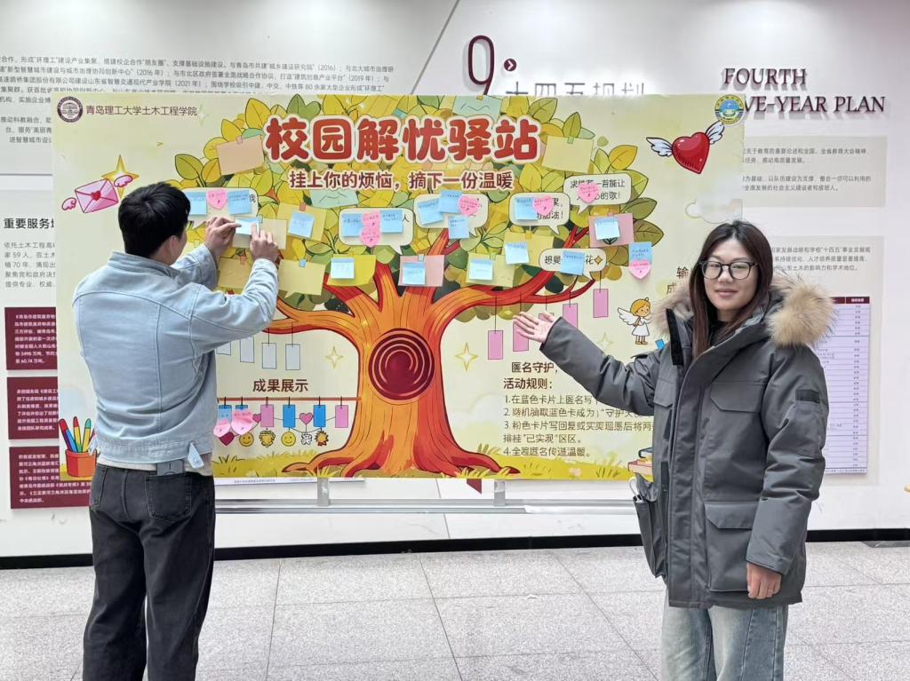 本次“校园解忧驿站”活动以温情化、轻量化的形式,搭建了学生之间情感支持与精神互助的平台,为构建和谐人文校园增添了积极动力。下一步,土木工程学院秉承“温暖融入日常、互助随处可见”的理念,把学生的“小心事”记在心里、“小烦恼”放在心上,精准聚焦学业压力、生活困惑、情绪调节等方面的身心需求,推出更多接地气、有温度的微活动,让友爱互助的氛围浸润校园每个角落,实现时时有暖意、处处见真情、人人享关怀。