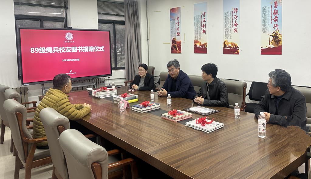 捐赠仪式上,副校长苗吉军代表学校对绳兵校友重返母校表示热烈欢迎,并对其心系母校教育发展、慷慨捐赠图书的善举表示衷心感谢。他指出,这批宝贵的图书资源将直接应用于学院的日常教学、实验实训和科研创新之中,为学院的人才培养、科学研究以及产学研合作提供有力的支持与助力。这批书籍不仅丰富了学院的馆藏资源,更承载着校友对母校的深厚情谊和对在校学子的殷切期望。绳兵校友分享了对母校培养的感激之情,并表达了希望通过捐赠专业书籍,助力学院学科建设与学弟学妹成长成才的愿望。副院长(主持工作)解旭东代表学院接受捐赠,并向绳兵校友颁发了捐赠证书。