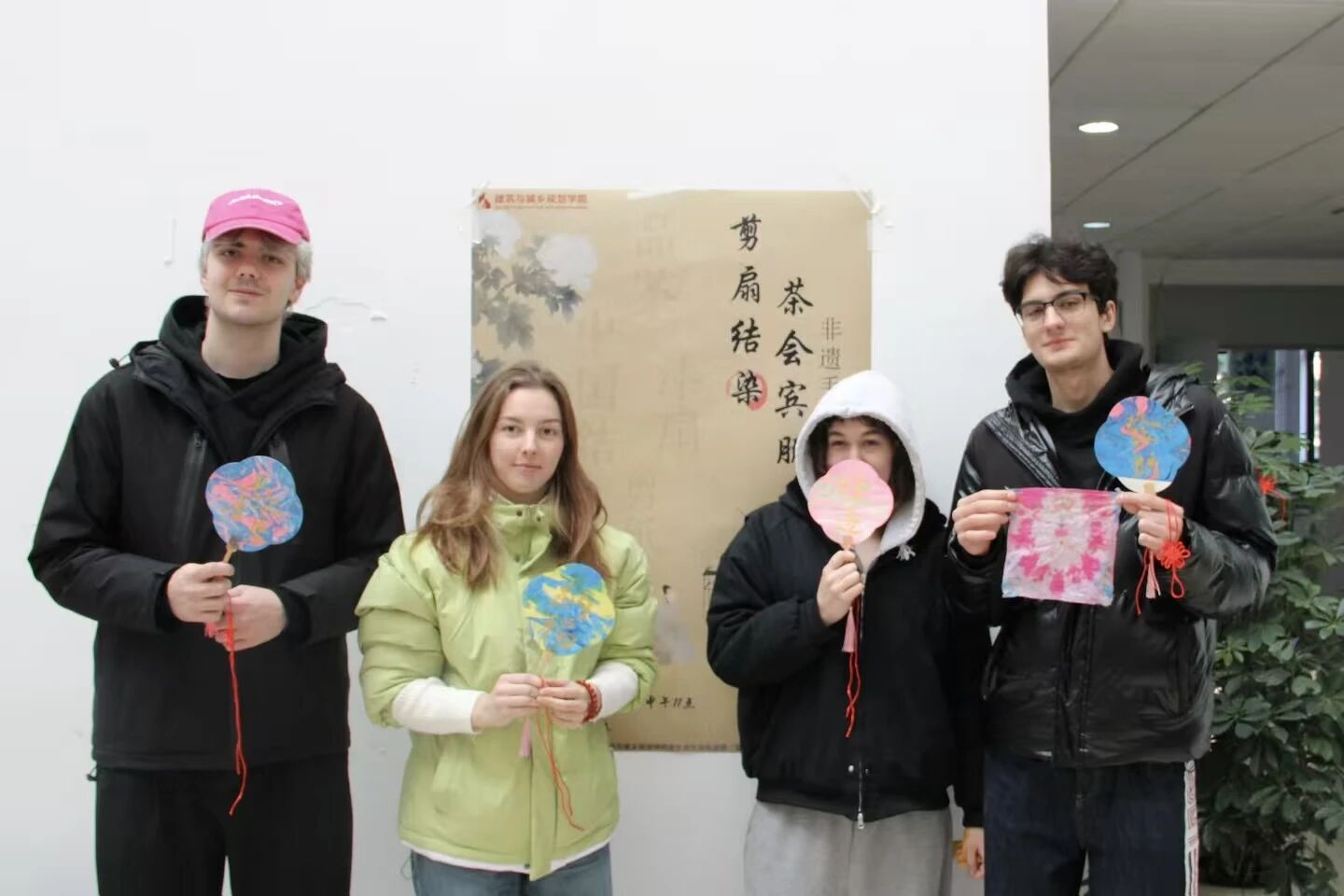 为传承中华优秀传统文化,搭建中外学子文化交流桥梁,12月14日,建筑与城乡规划学院在建筑馆三楼举办了一场别开生面的中外学生传统文化体验活动。活动集扎染、漆扇、剪纸、品茶非遗体验于一体,吸引了众多中外学子踊跃参与,现场成为一片欢乐交融的文化实践课堂。