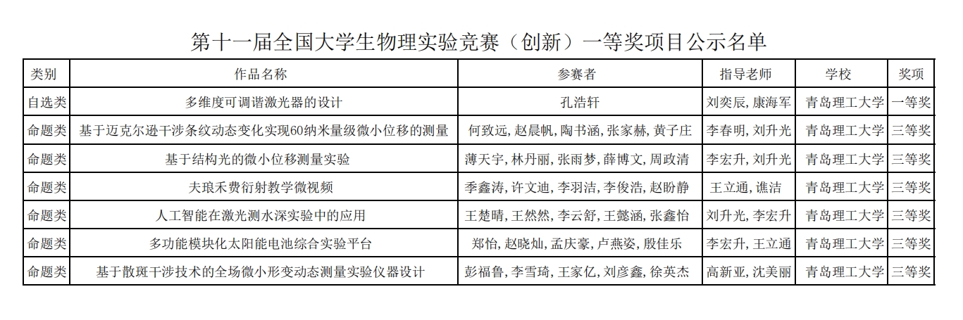 我校理学院刘奕辰、康海军老师指导的作品《多维度可调谐脉冲激光器的设计》在自选类项目中表现突出,荣获全国一等奖,排名位列全国第二。其余6支参赛队伍凭借扎实的实验功底与稳定的发挥,均获国家三等奖。全部队伍获奖,展现了我校学生优秀的综合实践能力与团队协作水平。
