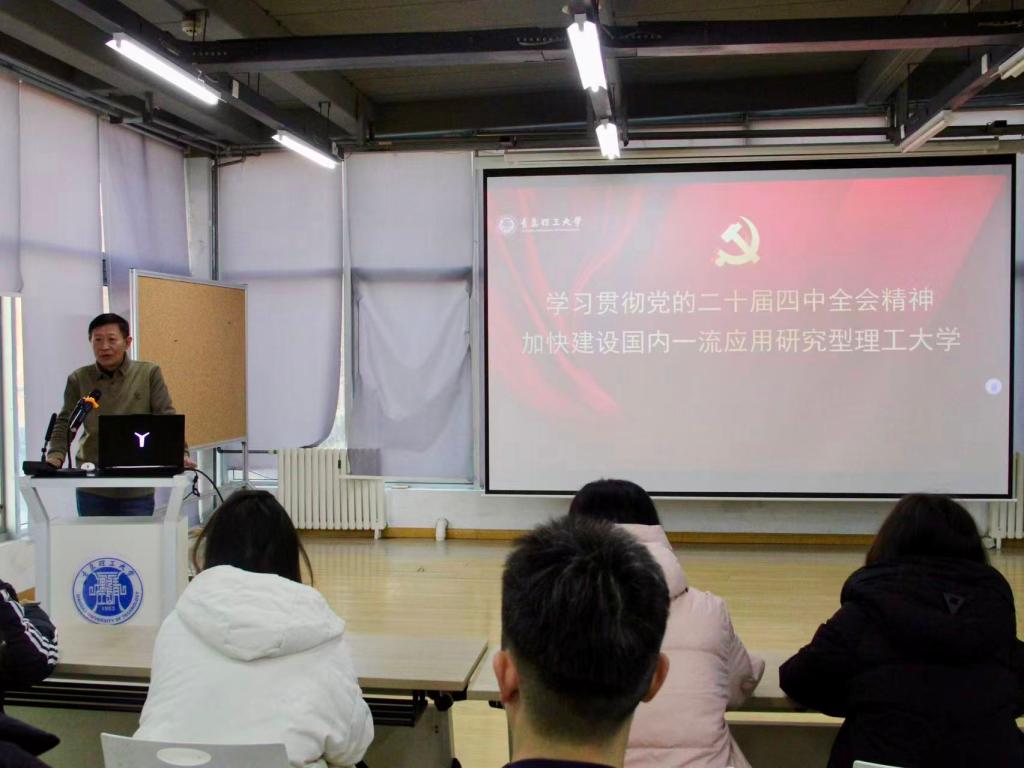 12月17日,学院邀请退休教师侯方高在滨海人居七楼面向百余名学生代表开展党的二十届四中全会精神专题讲解。侯方高紧扣会议主题,结合国家发展大局与城乡规划建筑行业的时代使命,系统阐释了全会的重大意义、核心要义与实践要求,引导青年学子深入领会党中央战略部署,思考如何将专业所学融入国家治理体系与治理能力现代化进程。之后,侯方高对在场青年学生提出学习生活建议,内容深入浅出、联系实际,使学生对全会精神有了更加全面深刻的理解,进一步明确当代青年自身责任。