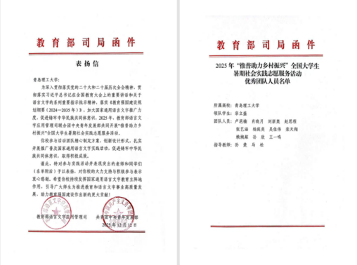 表扬信中特别指出,该团队精心制定实施方案,创新活动形式设计,扎实开展了推广普及国家通用语言文字的各项实践活动,为助力乡村振兴、促进铸牢中华民族共同体意识作出了积极贡献。
