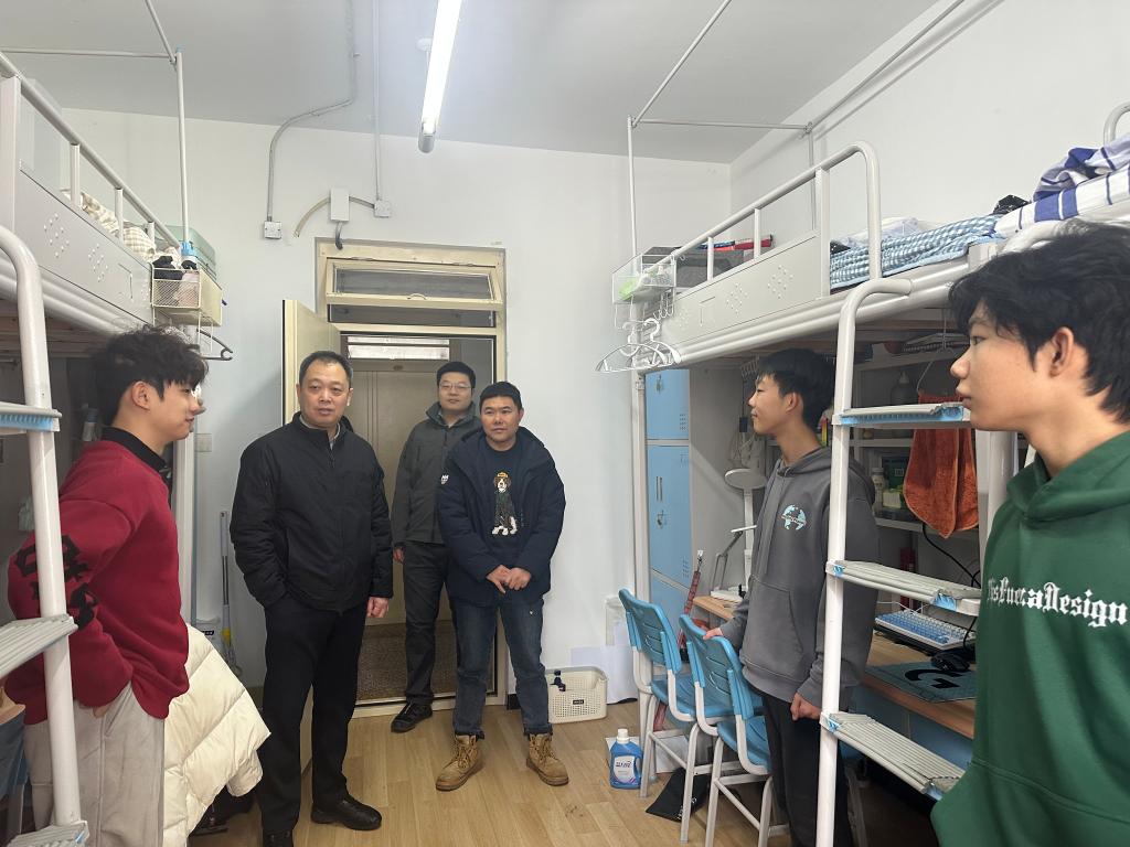 以抓关心关爱为纽带,筑牢师生情感桥梁,传递温暖关怀。3月8日,学院党委书记梁平、副院长(主持工作)解旭东、党委副书记王中帅带领全体辅导员深入学生宿舍,与同学们亲切交流,细致询问假期学习生活、身体状况等。走访过程中,老师们还就宿舍安全、卫生管理和心理调适等方面进行指导,鼓励学生尽快调整状态,以积极心态迎接新学期,营造温馨和谐的校园氛围。