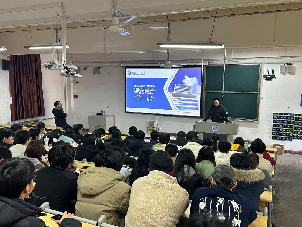 作为学院新学期育人工作的重要举措,“课赛融合第一课”聚焦调研类课程优势,重点推动学科竞赛与《城乡规划原理》《建筑法规》等课程的融合落地,打破课堂与赛场的壁垒,让竞赛要求成为课程教学的重要指引。学院以“挑战杯”大学生课外学术科技作品竞赛立足现实、解决实际问题的导向为核心,重构调研类课程教学体系,推动教学环节与竞赛标准无缝衔接,将专业课堂拓展为学生锤炼专业本领、备战竞赛的实践平台。为帮助学生快速把握课赛融合的学习方向,学院团委组织学团骨干走进课堂开展“课赛融合第一课”专题宣讲,牵头召开多场选题研讨会,搭建师生沟通桥梁,助力学子明晰调研与设计思路。