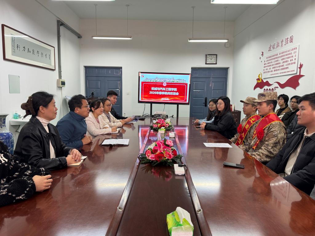 3月18日,机械与汽车工程学院2026年春季新兵入伍欢送会在学院会议室举行。学院党委副书记、副院长董虎,学院团委书记、学工办主任徐卫晓,辅导员代表、退伍大学生代表、2026年春季入伍新兵及在校生代表参加欢送会。