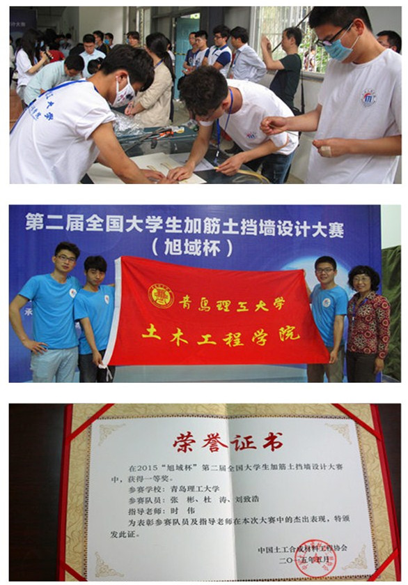 在本科生教育培养中,学院积极创造条件、加大投入、完善政策,鼓励本科生参加结构设计大赛、挑战杯等各类科技创新活动,培养学生创新意识和创新能力。此次在全国第二届加筋土挡墙设计大赛上取得的优异成绩,正是土木学院重视本科生创新实践能力的培养的体现。