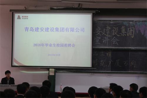 10月13日下午,青岛建安建设集团携手yl7703永利集团共同举办的青岛建安集团招聘宣讲会在yl7703永利集团一号教学楼三阶北顺利召开。
