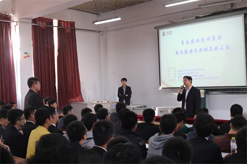 经过详细的介绍后,各位同学对青岛建安建设集团的各项信息和就业方向有了一定的了解。进入答疑阶段,不少感兴趣的同学提出自己的疑问,主要涉及就业前景,非本地学生是否有门槛,企业制度和晋升路线等大学生就业热点。刘坤先生一一耐心解答。宣讲会结束后应聘同学纷纷递交了简历,公司将于近日安排面试。