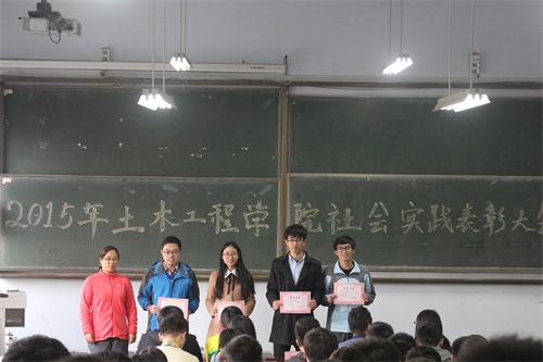 近日,为表彰学院学生在暑期社会实践调查中所取得的优异成绩,土木工程学院在一教200阶举行2015年暑期社会实践表彰大会。土木工程学院党总支副书记邹传波,年级辅导员王中帅、肖丽丽、韦子木、刘欣然出席表彰大会。