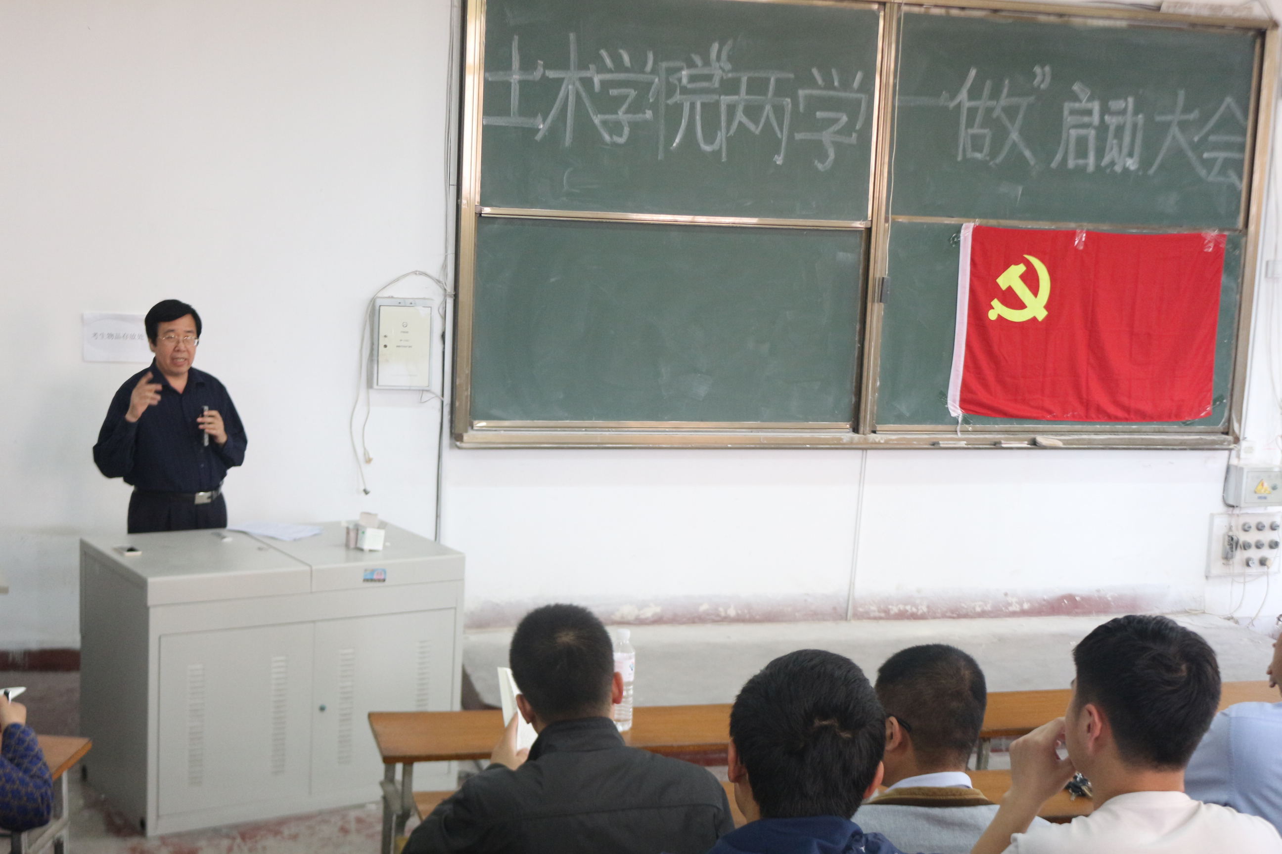 为响应习近平总书记提出的“两学一做”重要精神,进一步贯彻落实我校《关于在全校党员中开展“学党章党规、学系列讲话,做合格党员”学习教育工作方案》的全局工作部署,5月11日下午,土木工程学院全体党员“两学一做”启动大会在市北校区1号教学楼二阶举行,全院教工党员及学生党员140余人参加启动大会,土木学院党总支书记张明义主持大会,校派学习教育指导员组织部沈文青部长出席启动大会。