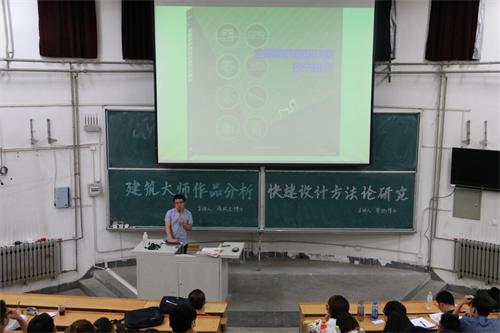 为开拓建筑学院学生视野,进一步加强对专业知识的了解,提高学生专业素养, 6月7日,建筑学院邀请同济大学建筑学博士、国家一级注册建筑师汤凤龙、李彬老师为我校建筑学子分别进行了关于建筑大师作品分析和快题设计方法论研究的知识分享与交流讲座,聂彤老师主持了本场讲座。