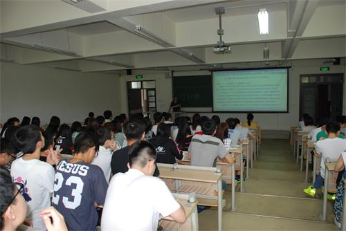 7月4日,由理学院教研室举办的2017届毕业生生产实习大会在嘉陵江路校区B202教室举行。理学院副院长胡京爽、理学院学生就业中心副主任刘尊年、理学院数学教研室主任高峰、理学院党总支副书记林海涛以及全体2013级学生参加了此次大会。