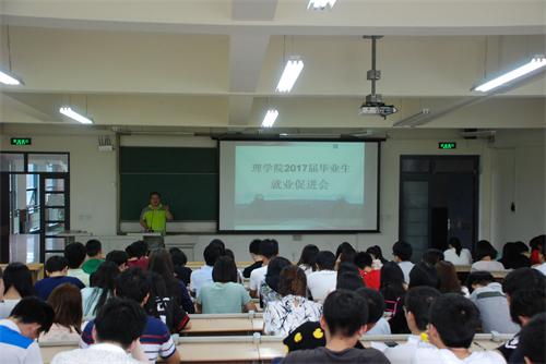 7月5日,理学院2017届毕业生就业促进会在嘉陵江路校区举行。理学院党总支副书记林海涛,年级辅导员以及全体2017届毕业生参加了此次大会。