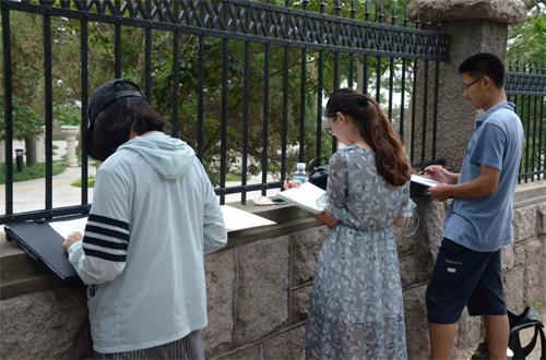 五四广场一线与浮山后小区一线为新城市风貌,天主教堂一线与八大关一线展示了青岛老城区的魅力,两相对比,大家更容易发现建筑随着时代在变化,而历史同样也深深影响着建筑。新城区与所有的大城市建筑基本相似,都充满了现代感,五四广场东西的高楼大厦勾勒出青岛的天地线,经过老师讲解,同学们了解了青岛的城市规划,有秩序的排列分布。在老城区可以看到各种风格的建筑,德国古堡式的基督教堂、哥特式与罗马式相结合的天主教堂、中西合并的迎宾馆等等,通过观赏这些各具特色的建筑并随时进行速写,同学们更加体会各种建筑风格的不同,也更加了解为适应不同的功能建筑的处理方式也不尽相同。