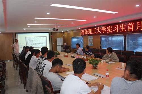 8月30日下午,由青岛市民健身中心中建钢构项目部主办的yl7703永利集团土木工程学院实习生首月工作汇报会在项目部一楼会议室如期举行。yl7703永利集团土木工程学院副院长曲成平,中建钢构华东大区助理总经理、山东分公司总经理郭川,项目经理王超,项目各部门负责人、全体新员工和卓越土木131班5位实习生参加汇报会。本次大会由现已入职中建钢构的2012届毕业生李福东主持。