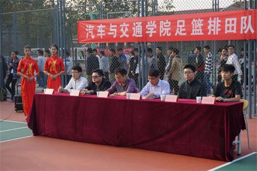 10月19日下午,汽车与交通学院足篮排田院队成立及拔河比赛于我校篮球场举行。到场嘉宾有党总支副书记李洪民,团总支书记隋学智,辅导员单勃奥、殷宗华。