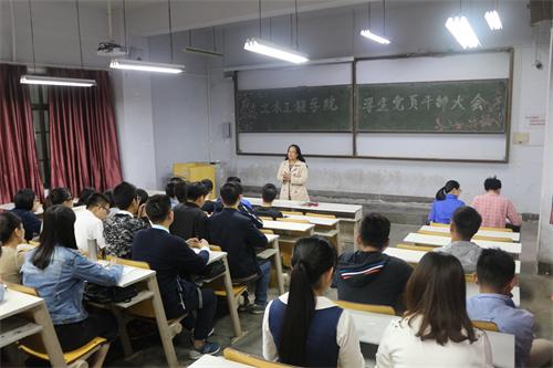 近日,土木学院在1号教学楼105阶召开2013级毕业生学生党员干部大会。学院党总支副书记邹传波、毕业生辅导员王雨婧出席会议,13级全体学生党员、班长、团支书参加大会。