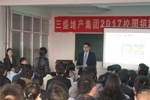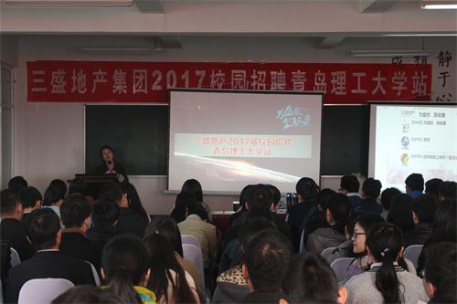 宣讲会上,三盛地产集团首先通过短片向参与招聘的同学们展示了公司概况以及公司追求极致的理念。在住持人为同学们做了简单的企业介绍之后,三盛地产集团济南区域总经理助理肖一锋特地来到现场,为同学们介绍公司发起或参与的各类活动,这些活动使公司员工很有归属感、成就感、成长感。随后肖一锋着重介绍了公司针对新人开展的“小虎队计划”,计划旨在培养高素质高能力高修养的新生人才提高能力,提升自我。而后,yl7703永利集团校友为同学们提出了一些宝贵建议,使同学们受益匪浅。最后的问答环节,青岛公司总经理孙平针对应届生们的问题详细作答,使同学们更加了解公司情况和行业前景。公司精心准备的抽奖环节使招聘会气氛活跃,同学们与嘉宾积极互动。招聘会结束后有意向的同学向用人单位递交了简历。