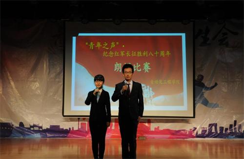 为纪念红军长征胜利八十周年,弘扬伟大的长征精神,深入开展理想信念教育,11月5日、6日,自动化学院在嘉陵江路校区大学生活动中心举办了“青年之声·纪念红军长征胜利八十周年”朗诵比赛,党总支副书记鞠志强、团总支书记甘露露等老师现场观看。