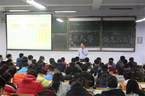 11月9日,土木学院在一教200阶、300阶举办了“这大学,该怎么上?”新生教育讲座,土木学院党总支书记张明义、副院长曲成平出席讲座。