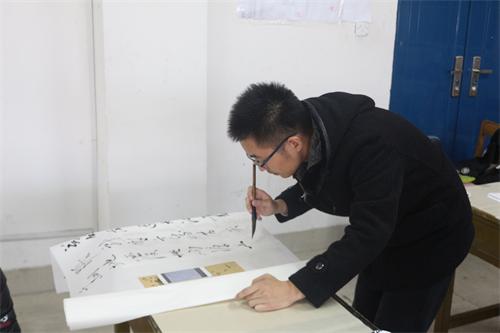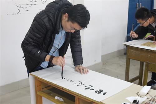 各选手挥毫泼墨,尽展风采,张扬个性。赛后选手作品评定时,评委老师与选手进行当面点评指导,同学们受益颇深。