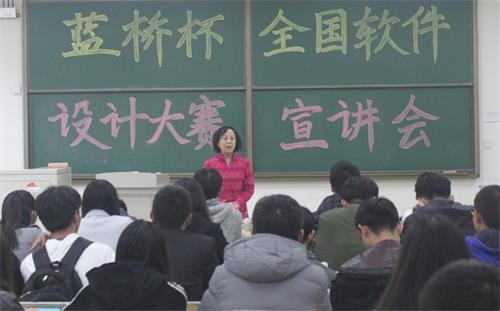 11月18日下午,计算机学院在主教学楼B209举行了“蓝桥杯”全国软件设计大赛宣讲会。团总支书记张英华,优秀指导教师李兰,优秀学生代表柴文俊、孙启龙及2014、2015、2016级部分学生参加了本次大会。