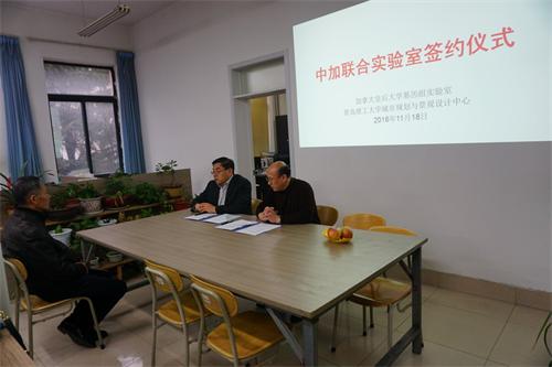 日前,我校建筑学院城市规划与景观设计中心与加拿大皇后大学基因组实验室共建联合实验室签约仪式在建筑馆筑言堂举行。加拿大皇后大学刘旭东教授,建筑学院院长郝赤彪、党总支书记张建新以及风景园林系主任刘福智老师等出席了签约仪式。