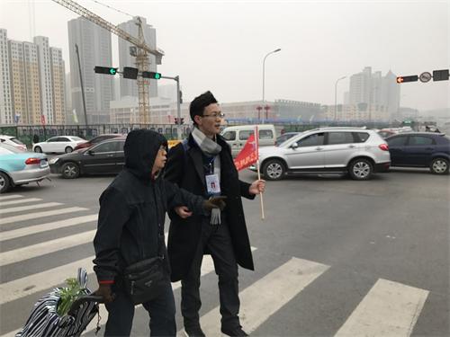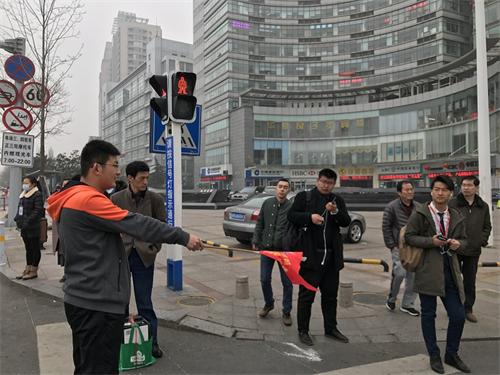 在街口执勤交警部门的安排下,学院志愿团队分别于长江中路与武夷山路、长江中路与井冈山路、长江中路与庐山路三大交叉路口开展活动。上午的大风天气使得气温骤降至零下4度,这明显加大了活动开展的难度,在值班交警的悉心指导下,团队成员积极地进行着指挥,耐心对闯红灯行人进行劝阻,帮助老人过马路,在大家的努力指挥与市民积极配合下,路口拥堵情况明显好转。