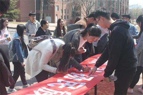 参与签名活动的同学纷纷表示,虽然先烈已去,但他们的光辉事迹会化成永不磨灭的丰碑,永远矗立在我们的心中。