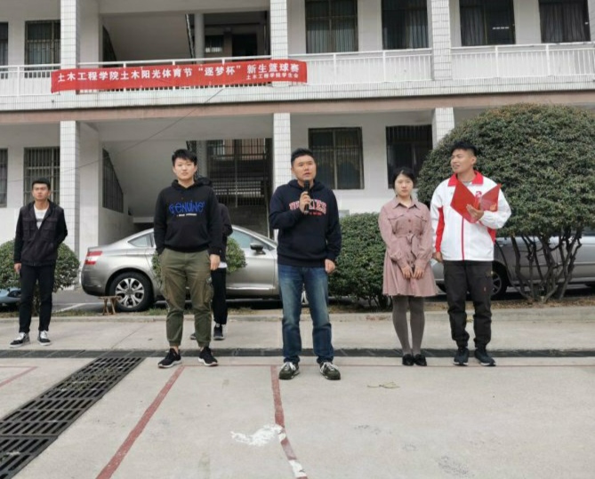 10月25日,土木工程学院阳光体育节——“逐梦杯”新生篮球赛于市北校区南院篮球场开幕。学院学生工作办公室主任、分团委书记王中帅,辅导员徐杨杨及2019级各班级参赛队员参加本次开幕式。