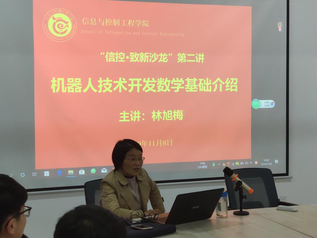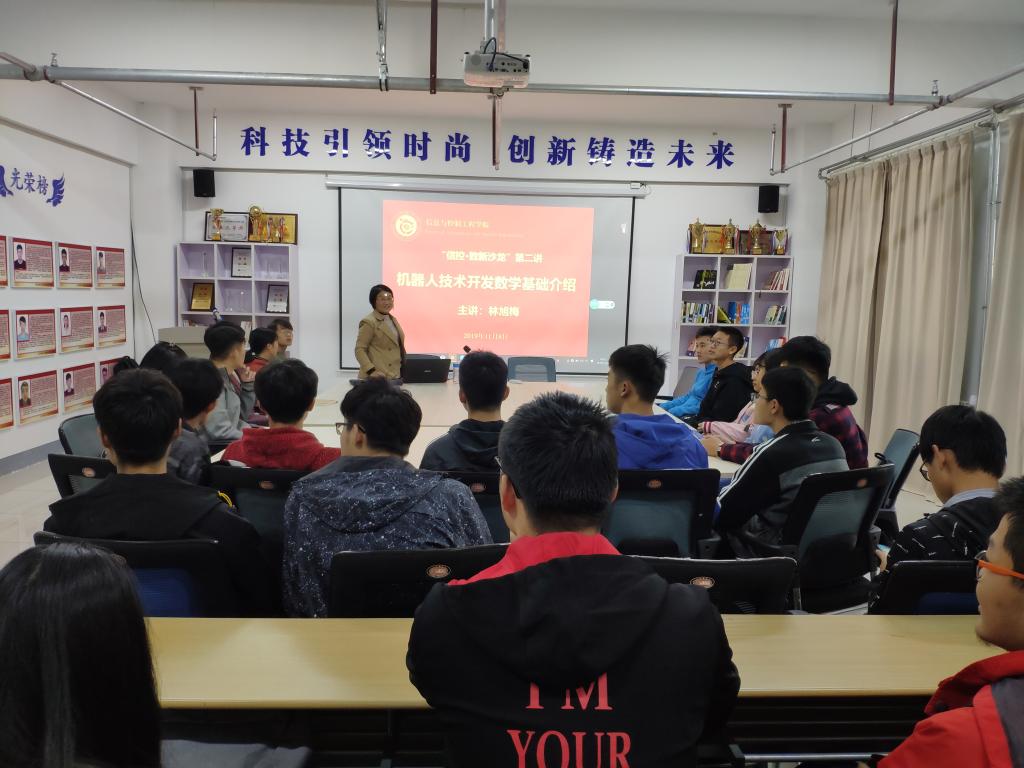 11月8日下午,信息与控制工程学院举办“致新·沙龙”第二期学术交流活动,本期邀请学院电气工程教研室林旭梅老师担任主讲,主讲题目为“机器人技术开发数学基础”。参与本次沙龙交流活动的是学院大二、大三的电气工程、自动化、建筑电气等专业的同学,辅导员刘荣稳主持学术讲座。