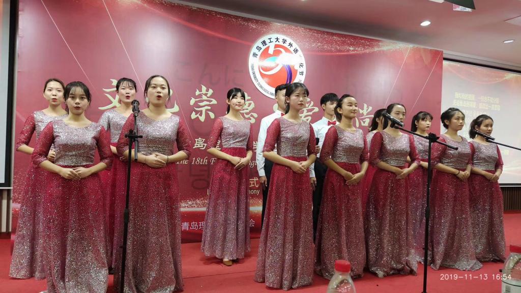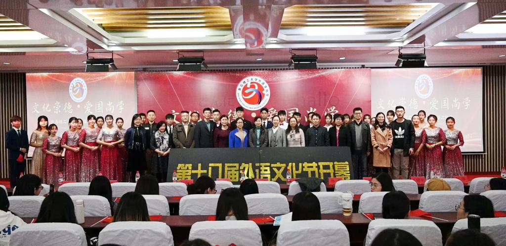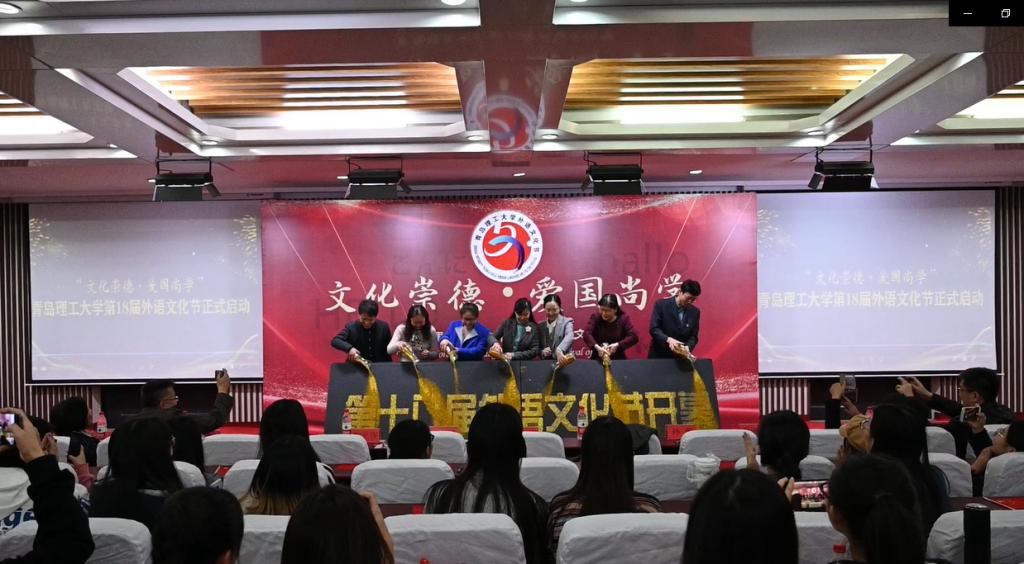11月13日下午16时,yl7703永利集团第十八届“文化崇德、爱国尚学”外语文化节开幕式在嘉陵江路校区一楼西报告厅顺利举行。校党委常委、副校长沈文青出席并致辞,黄岛校区管理办公室、学生处、校团委、教务处、人文与外国语学院领导班子与嘉陵江路校区300余名师生共同拉开了外语文化节的帷幕。