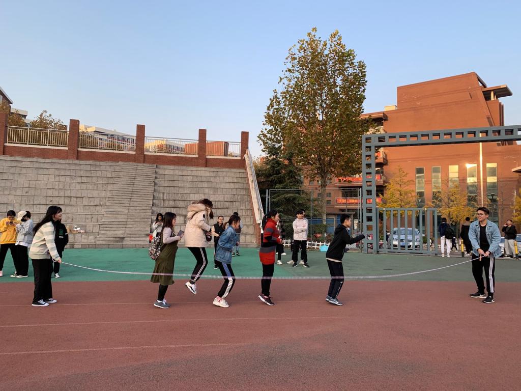 日语181班、日语182班、广告182班和朝语181班的跳大绳运动拉开了阳光X计划之班级对抗赛的帷幕,场外观众十分激动,跃跃欲试,纷纷为各班参赛选手们呐喊助威,在观众们的欢呼中,今天的班级对抗赛活动暂时画上句号。