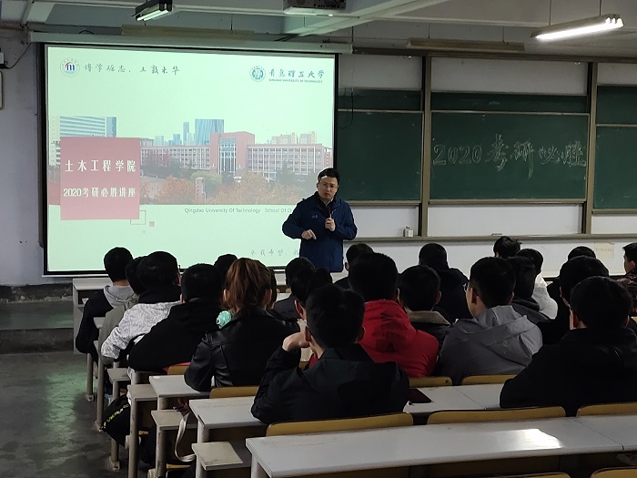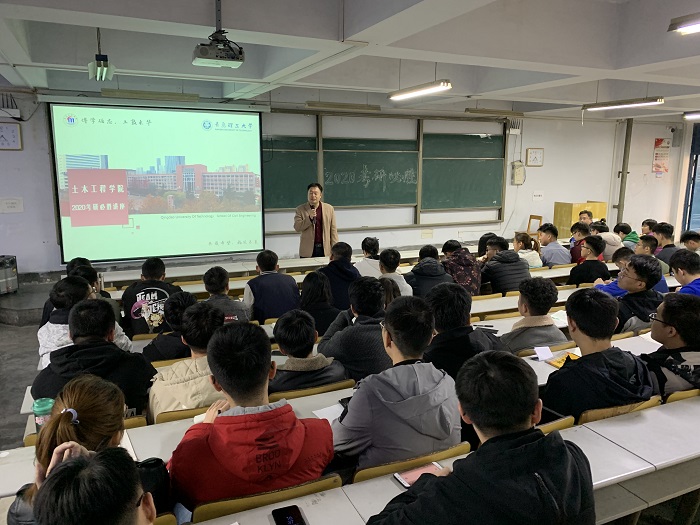 为帮助2020届考研学生们及时了解考研信息,有针对性的做好备考工作,正确处理好考研和日常学习的关系,土木工程学院持续开展了“考研护航工程”,11月15日下午,学院在一教400阶举行为2020考研学生举行了讲座,学院副院长张鹏、教学秘书房玉佩、辅导员刘欣然为学院备战考研的学子从专业选择、缓解心理焦虑等方面进行讲解,讲座由党总支副书记邵先锋主持。