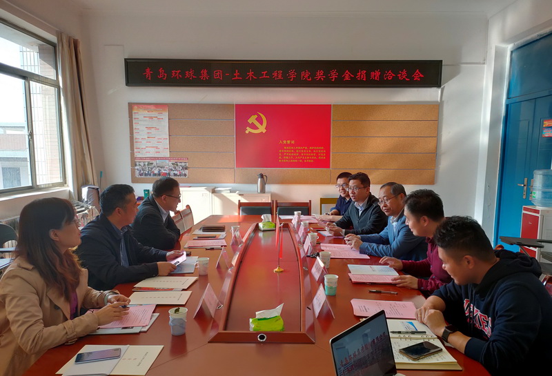 11月15日,青岛环球集团股份有限公司赴土木工程学院就奖学金捐赠事宜进行洽谈。集团副总经理尹郁武、办公室主任柴立、技术中心主任张希悦,学院党总支书记曲成平、副书记邵先锋、副院长张鹏、学生工作办公室主任、分团委书记王中帅及辅导员郑猛出席活动。