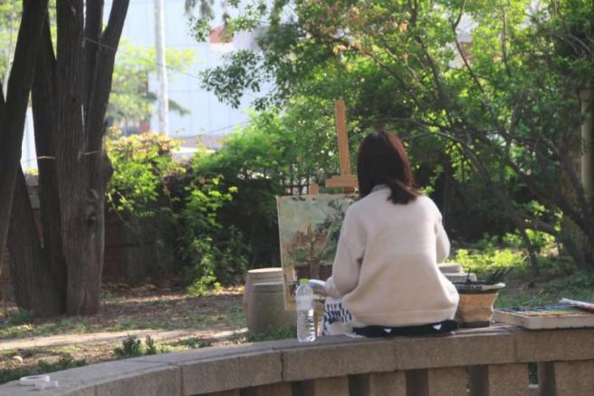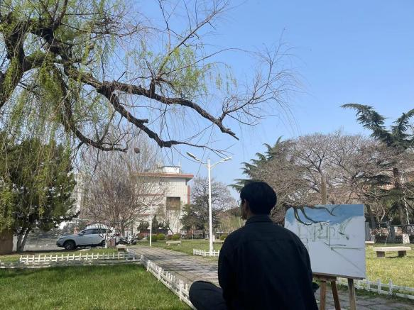 春日的校园内遍布着艺院学生认真写生的身影,他们用画笔记录最美的校园,画出眼中的风景。风景写生就是让学生走近大自然,在户外光线下,充分感受大自然丰富多彩的色彩变化。任课教师李鑫现场示范教学,从写生角度选取、构图、用笔、调色等方面进行示范,同学们把校园美景以及对专业的热爱之情用画笔注入到自己的作品中,沉浸写生的艺院学子也成为学校一道靓丽的风景线。