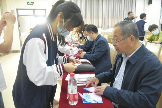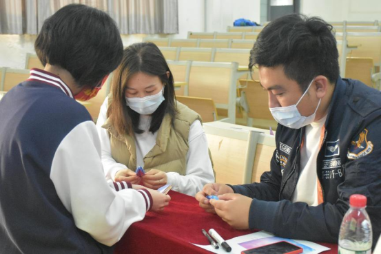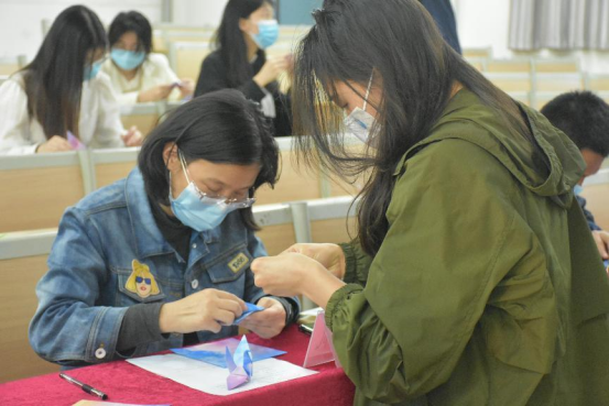 开幕式上,邀请在场的老师和同学们参与叠千纸鹤活动,大家把祝福话语写在纸上,把带有祝福话语的彩纸用心叠成一只只栩栩如生的千纸鹤,表达美好祝愿。