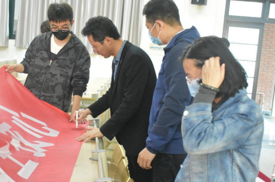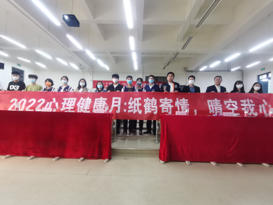 开幕式最后,与会师生在“2022年心理健康月:纸鹤寄情,晴空我心”横幅上签名留念。